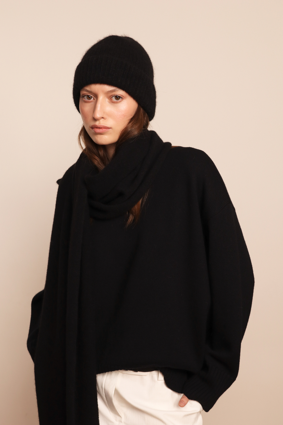 Длинный шарф из премиальной итальянской шерсти альпаки. Мягкий, пушистый и очень тёплый. Удлинённая форма делает модель универсальной: можно многократно оборачивать или носить свободно для расслабленного силуэта. Размер шарфа 37 см на 230 см