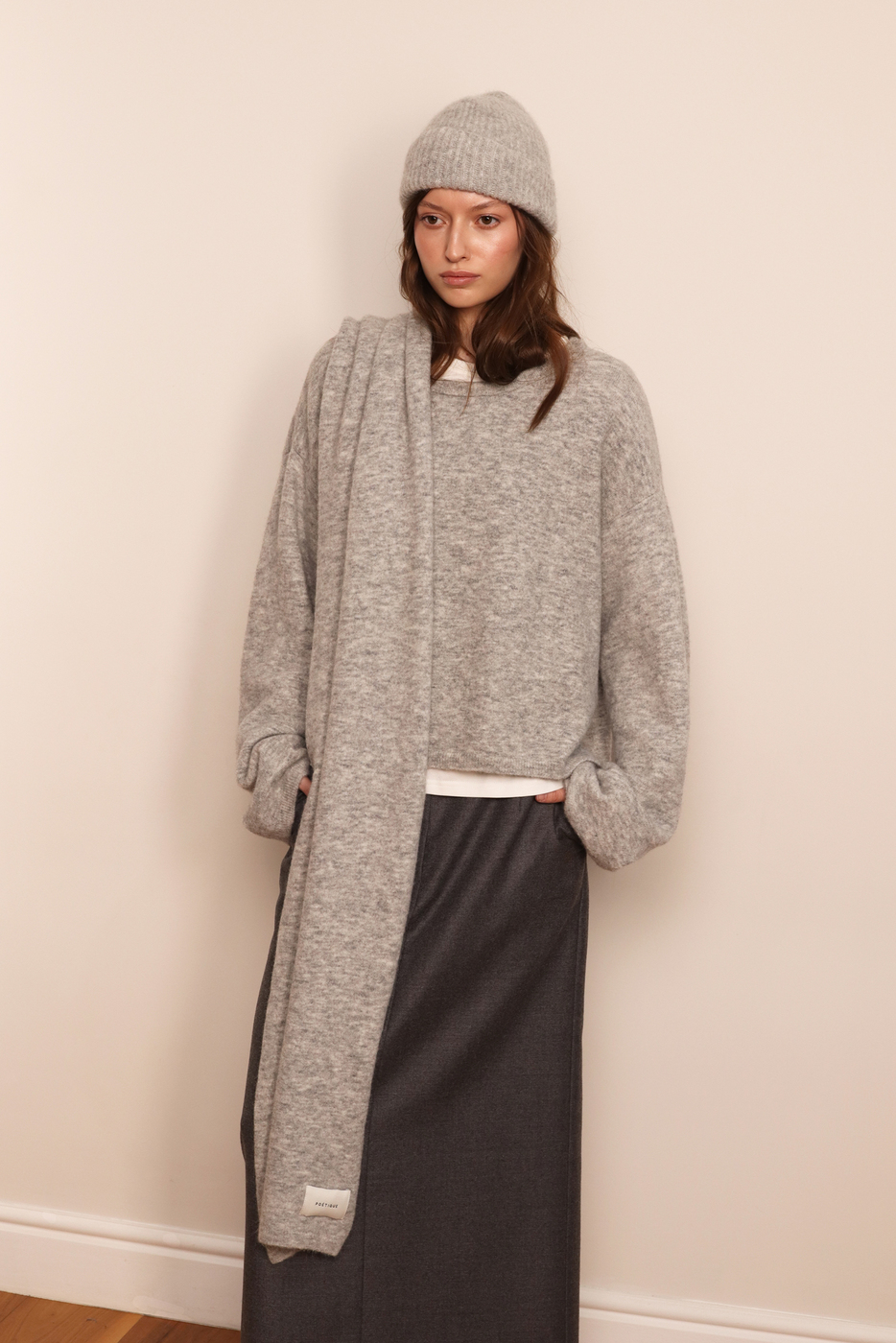 Длинный шарф из премиальной итальянской шерсти альпаки. Мягкий, пушистый и очень тёплый. Удлинённая форма делает модель универсальной: можно многократно оборачивать или носить свободно для расслабленного силуэта. Размер шарфа 37 см на 230 см