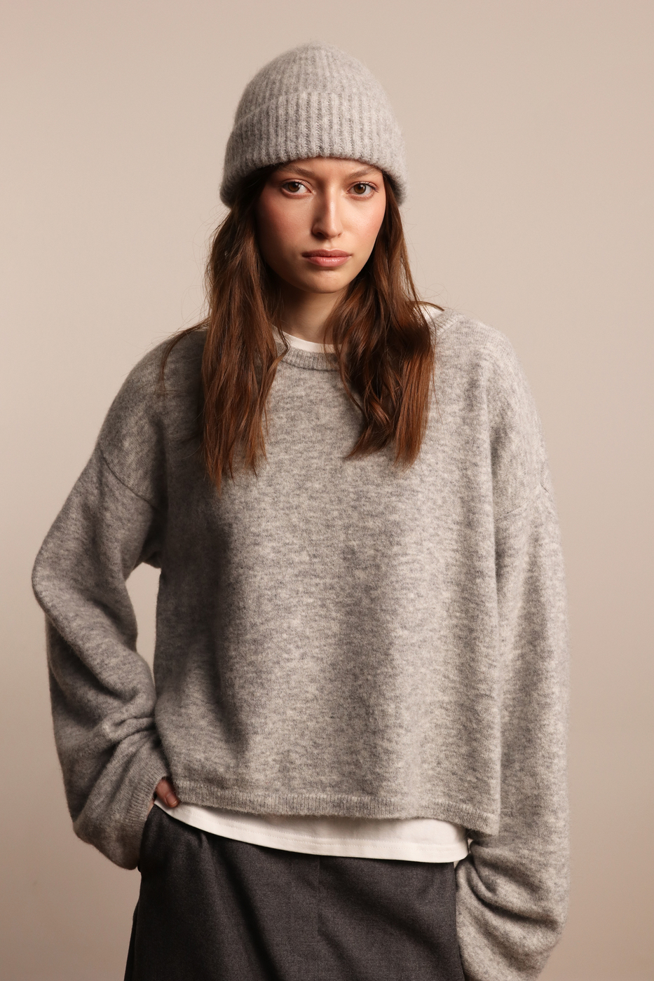 Объёмная шапка из премиальной итальянской шерсти альпаки с широким отворотом. Пушистая текстура и мягкая, неприлегающая посадка создают современный, effortless-силуэт. Лёгкая, но при этом исключительно тёплая — акцентная деталь зимнего гардероба.