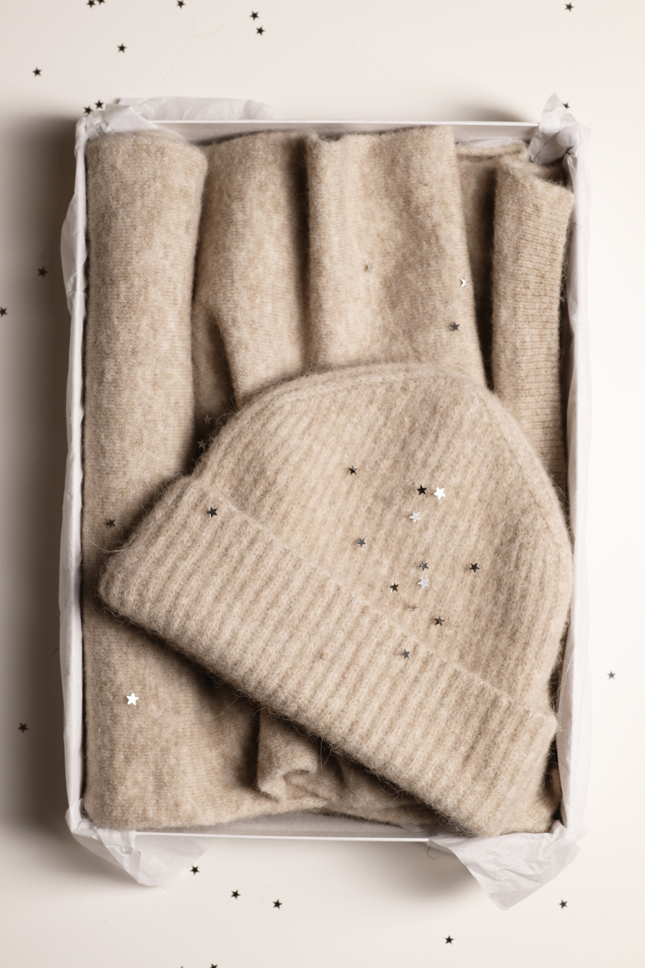 Объёмная шапка и длинный шарф из премиальной итальянской шерсти альпаки в подарочной коробке POETIQUE. Размер шарфа 37 см на 230 см
