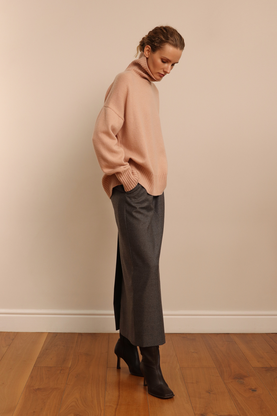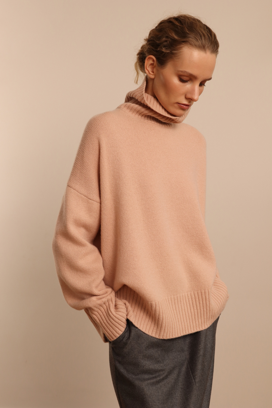 Свитер объемный из кашемира и мериноса, розе