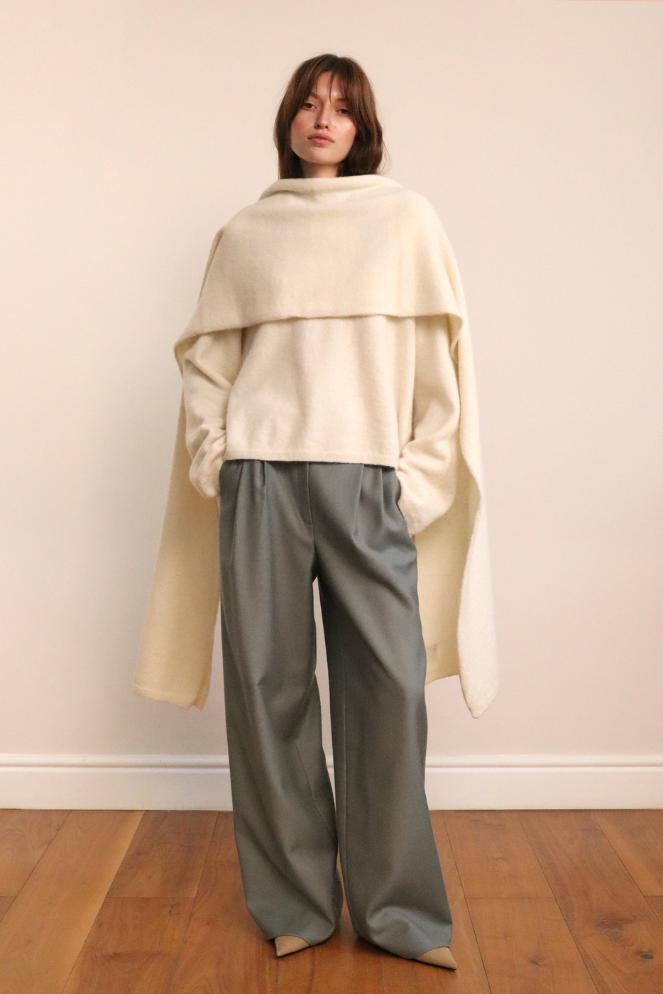 Длинный шарф из премиальной итальянской шерсти альпаки. Мягкий, пушистый и очень тёплый. Удлинённая форма делает модель универсальной: можно многократно оборачивать или носить свободно для расслабленного силуэта. Размер шарфа 37 см на 230 см